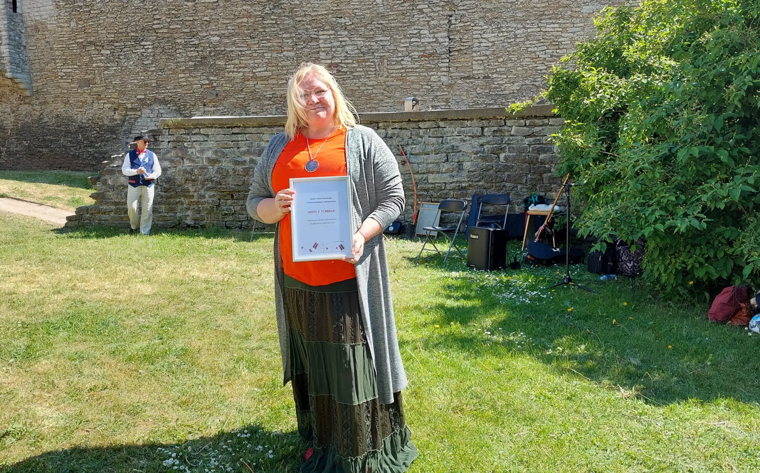Merle Tombak on innukas ja initsiatiivikas naine, kes leiab vabanduste asemel alati võimalusi. Talle meeldib näha väikeste detailide taga suuremat pilti ning olukordi analüüsida, mõtestada. Temast õhkub palju positiivset energiat, millega on lihtne teisi kaasa tõmmata ning kui vaja - ka läbi seinte minna. Oma vabatahtliku töö ja suure panuse eest folklooriliikumisse on ta pälvinud Eesti Folkloorinõukogult ka folkloorikuraatori preemia.