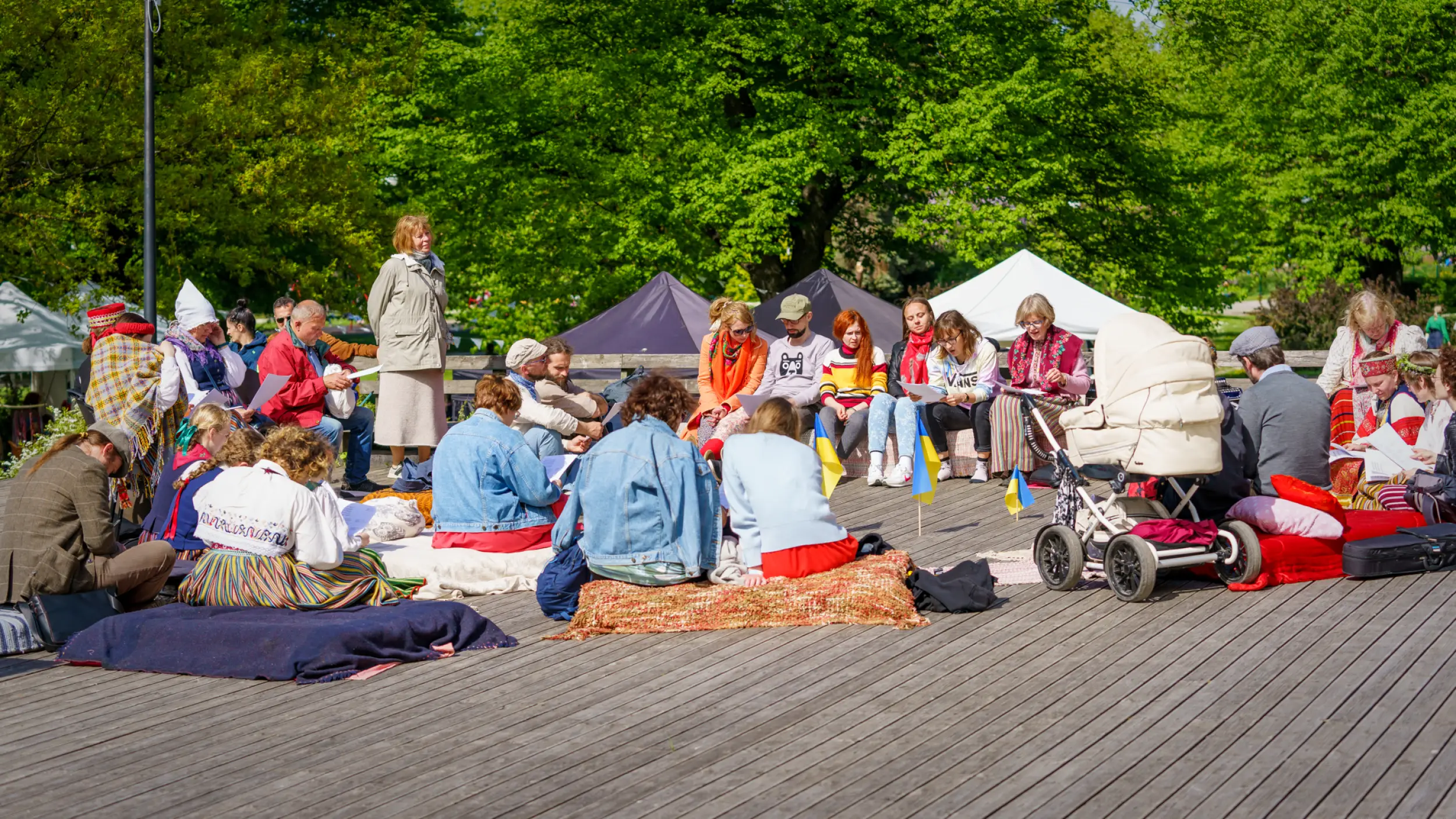 Oleme järginud kaasava laulmise põhimõtet – oodatud on kõik, kes tahavad laulda, eelduseks ei ole varasem laulmiskogemus, kindla repertuaari tundmine ega viisipidamine. Laule valides oleme lähtunud sellest, et repertuaaris oleks laule, mis on tuttavad ja armsad enamusele ukrainlastest, aga ühtlasi ka midagi uut. Ma ise otsin vanu, suulisest traditsioonist pärit laule, aga laulame ka mitmesuguseid rahvalikke laule, mida lauljad on välja pakkunud. Suhtleme eri keeltes, igas proovis kõlab ukraina, eesti, inglise ja vene keel. Ehkki viimast tahaks vältida, on see ainus võimalus mõnede ukrainlastega suhtlemisel. Silla loomiseks olen püüdnud ära õppida korduvaid sõnu, näiteks laulame, kordame, esimene, teine, … hääl, salm. Samas kõik meil vene keelt ei oska, nii et pidev ümberlülitumine on paratamatu.